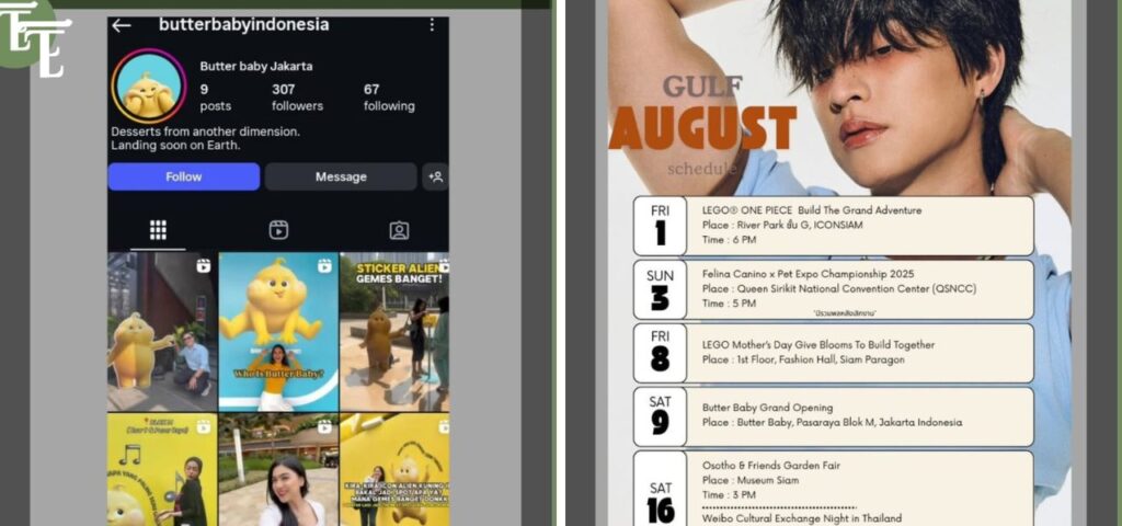 Pasalnya Gulf dikabarkan akan memiliki jadwal pekerjaan di Indonesia, pada 9 Agustus mendatang. Gulf diketahui akan menghadiri acara ‘Butter Baby Grand Opening’, di Butter Baby, Pasaraya Blok M, Jakarta. Butter Baby sendiri merupakan salah satu maskot berwarna kuning menggemaskan, yang merepresentasikan dan mempromosikan sajian dessert. Sebelumnya akun Instagram @/butterbaby sempat mengunggah video saat bermain ‘Batu, Gunting, Kertas’ bersama Gulf, pada 22 Juli lalu.