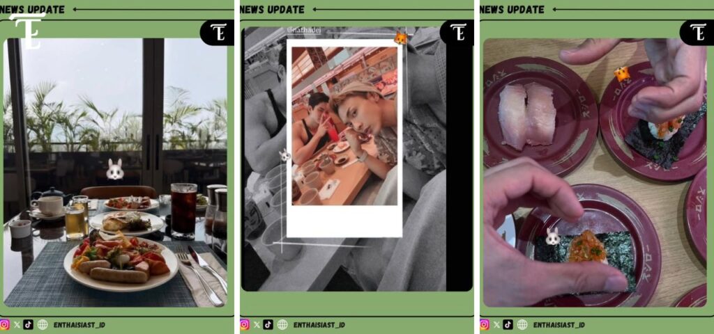Lalu disusul dengan unggahan Nat beberapa hari setelahnya, yang mengunggah banyak potret mereka saat berlibur di Phuket, Thailand. Ia menuliskan keterangan, “To the sea 🦊🌊✈️🐰 Together…..” Jeffy juga terlihat meninggalkan komentar, “🐰.”