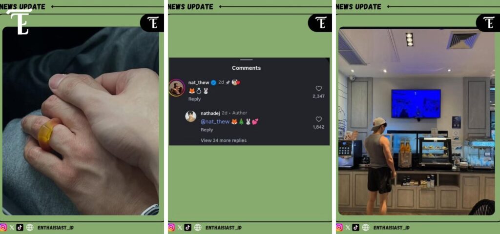 Hal ini pertama kali terungkap dari unggahan Jeffy Nathadej melalui Instagram miliknya. Ia mengunggah beberapa potret dirinya, hingga di slide terakhir terlihat genggaman tangan dari dua orang dengan sebuah cincin dari permen. Ia menambahkan keterangan, “🩷.” Pada kolom komentar terlihat Nat yang memberikan komentar, “🦊💍🐰” dan dibalas, “🦊🎄🐰💕,” oleh Jeffy.