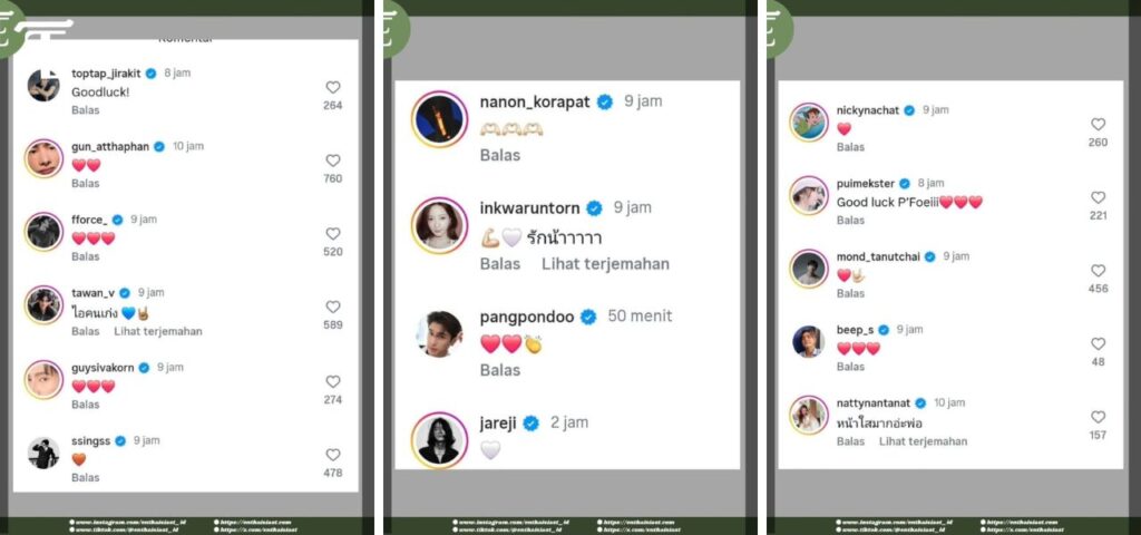 Foei menuliskan, “Terima kasih atas 10 tahun bersama perusahaan ini. Terima kasih juga pada Phi Eaky, Phi Chod, perusahaan GMM25 dan yang terakhir adalah P’Tha dan perusahaan GMMTV. Orang ini belum meninggalkan industri ini dan belum menerima penghargaan apapun. Dia hanya akan mulai berlayar sendiri, mencari kesenangan baru dan berkembang.”