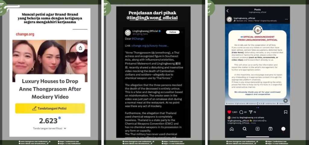 Situasi perang yang terjadi antara Thailand dan Kamboja semakin memanas. Banyak hal yang akhirnya menjadi sangat sensitif dan dapat memicu kesalahpahaman antar satu sama lain. Seperti halnya yang terjadi baru-baru ini pada tiga publik figur asal Thailand, yakni Aktris senior Anne Thongprasom, Dew Pinkamol dan Lingling Sirilak Kwong.